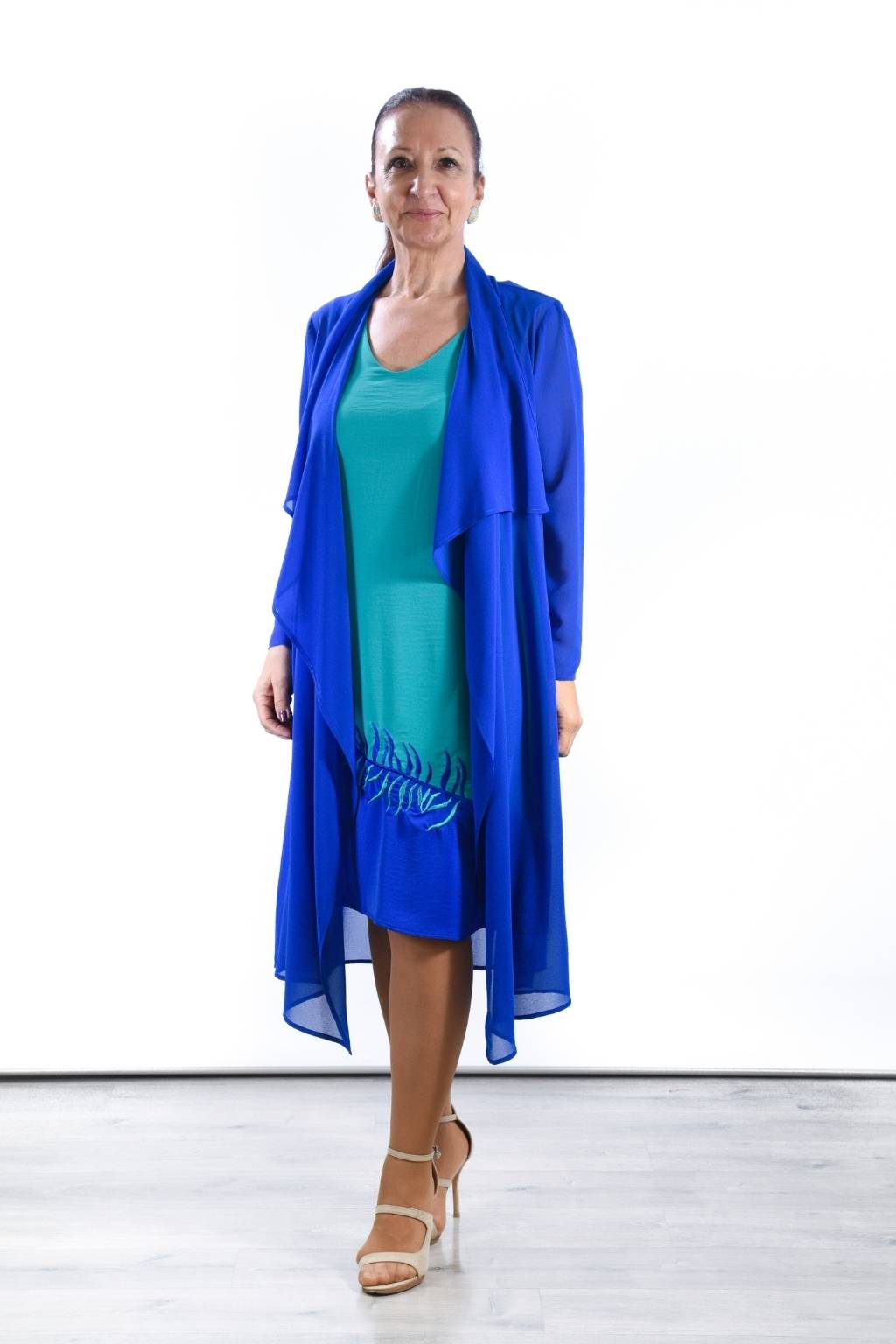 Vestido Corto Leonardo: Diseño Bicolor con Bordado de Rama Invitada con Estilo Tallas 38-54