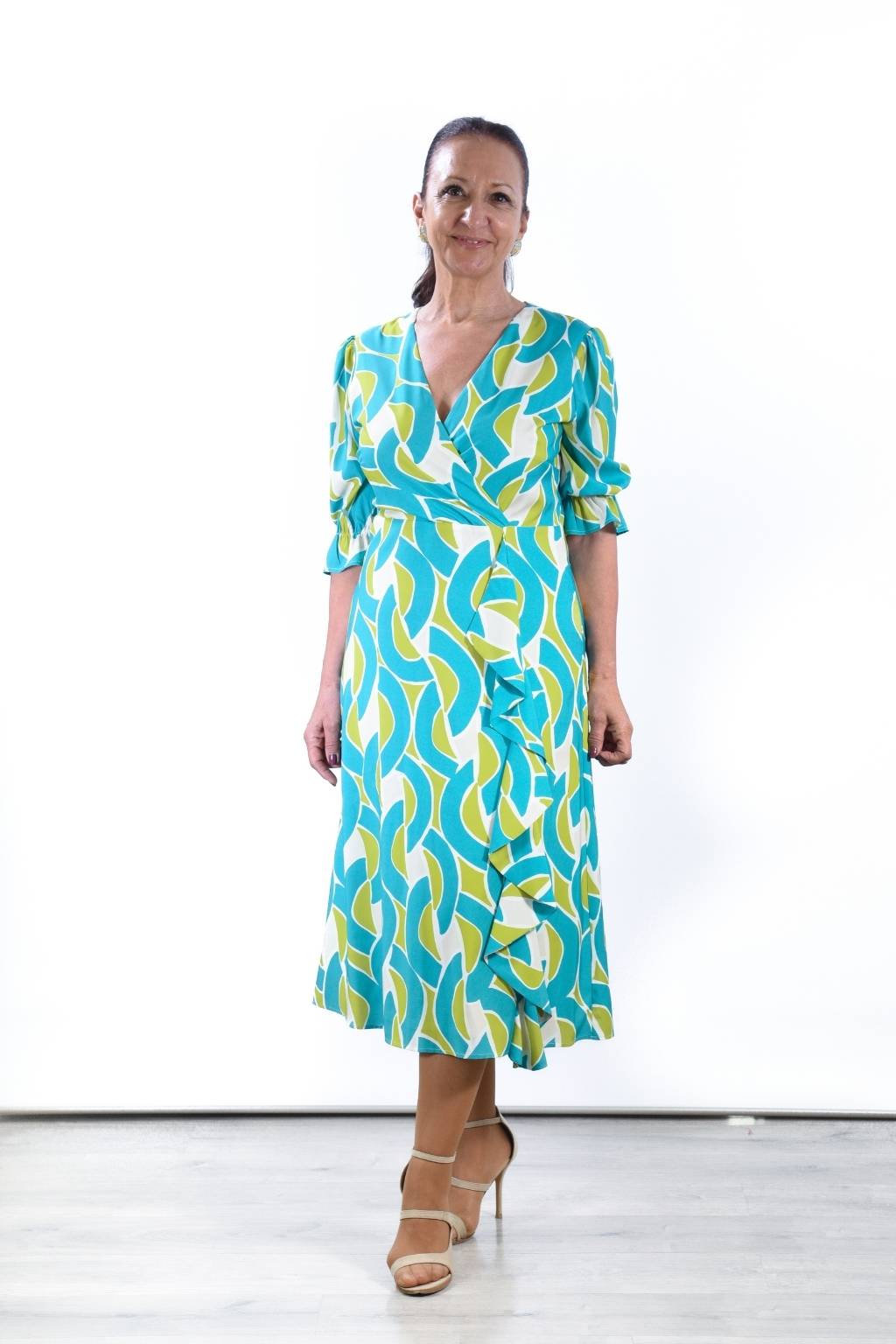 Vestido Eugenia Print Greo Tricolor Cruzado