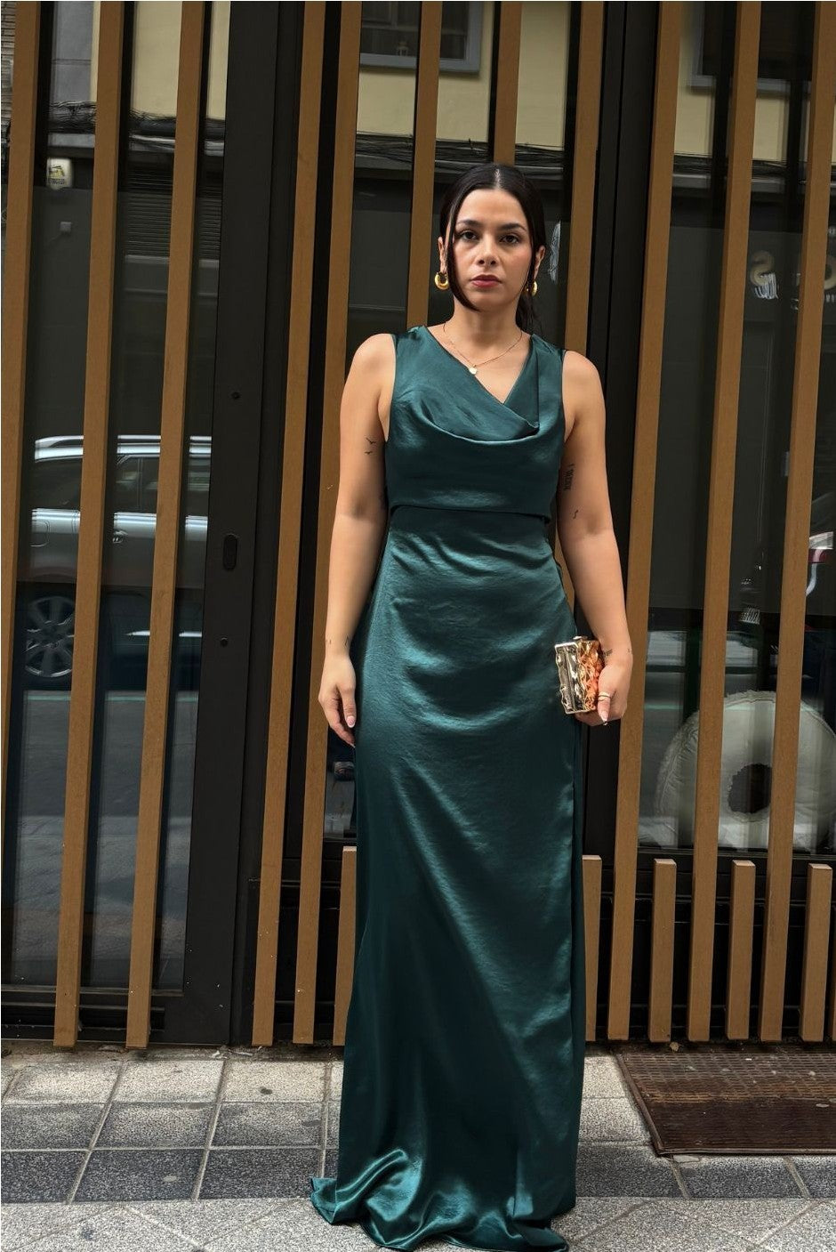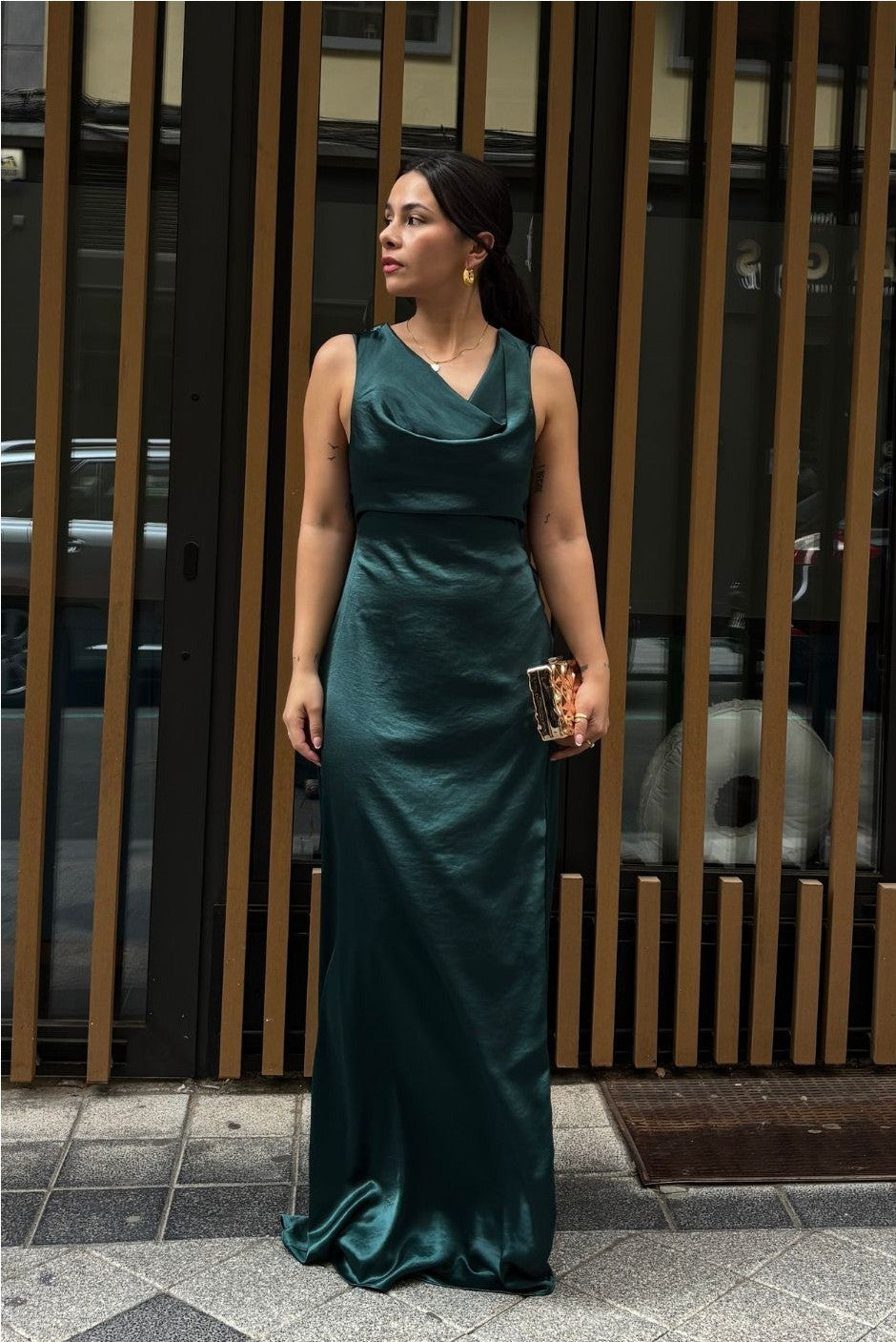 VESTIDO SATINADO CUELLO CAÍDO