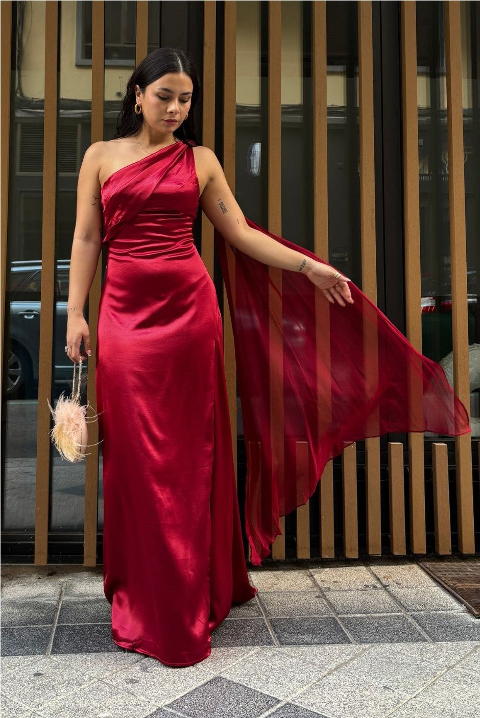 VESTIDO ASIMÉTRICO SATINADO