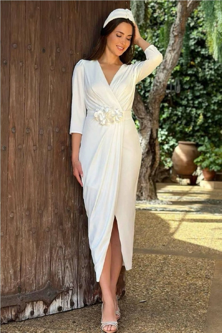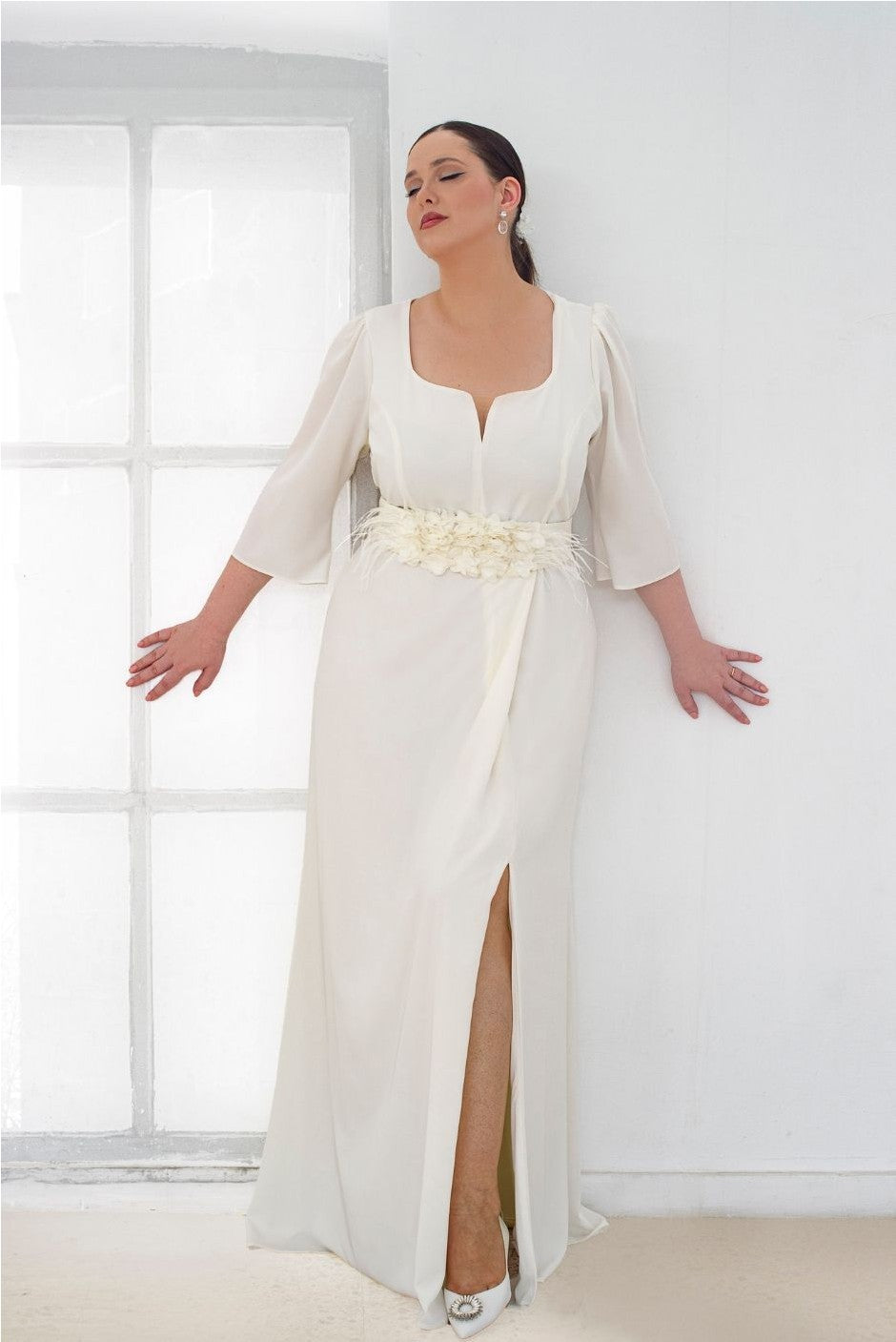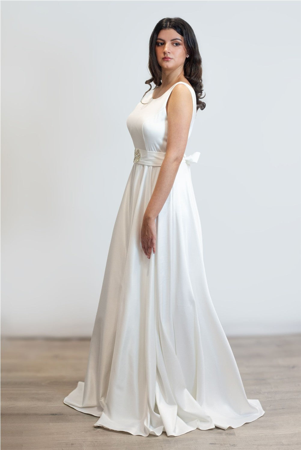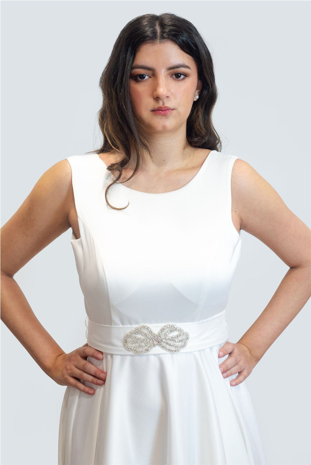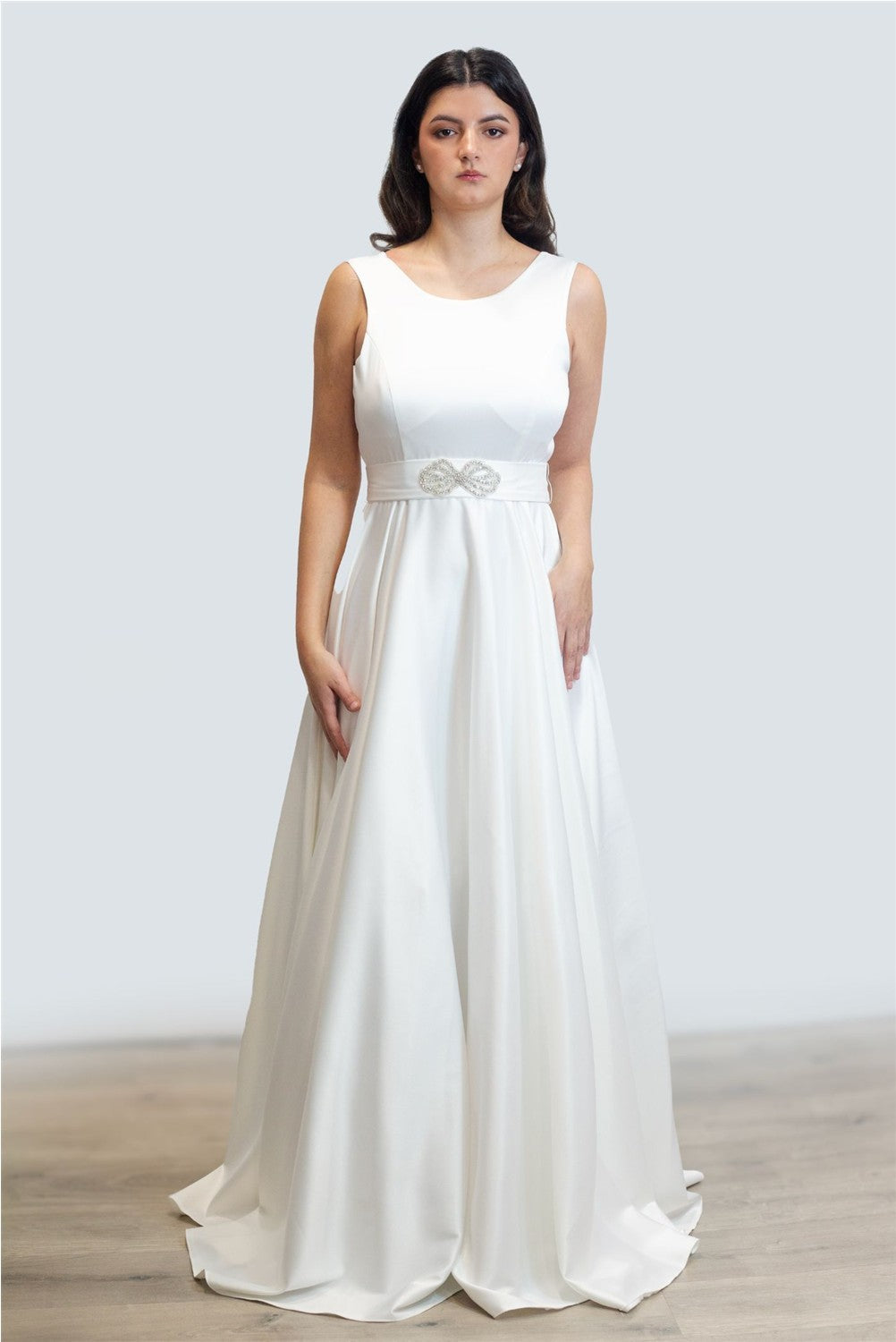 VESTIDO LARGO NOVIA CON CINTURÓN BLANCO
